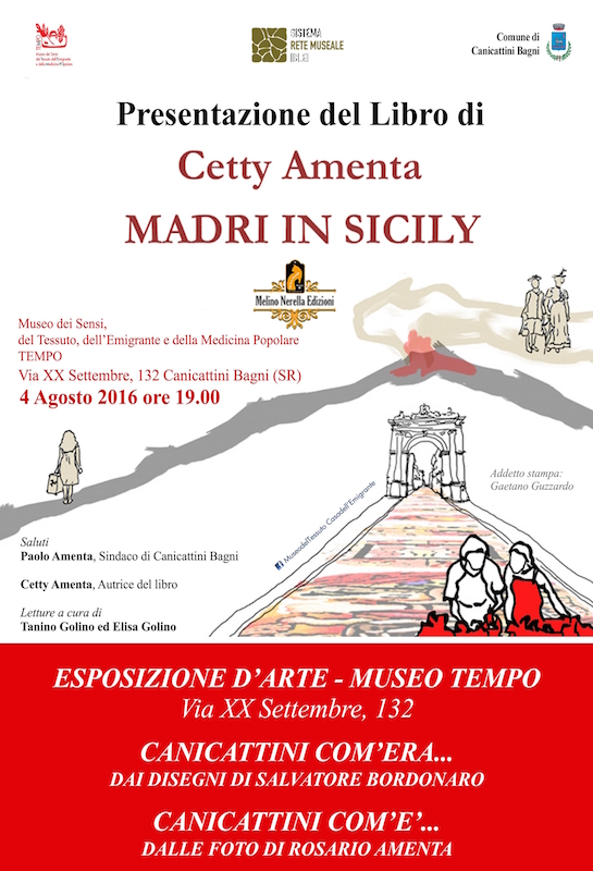 È quello che scopriremo, a cura del Museo TEMPO (Museo dei Sensi, del Tessuto, dell’Emigrazione e della Medicina Popolare), del Sistema Rete Museale Iblei, e del Comune di Canicattini Bagni, conoscendo “Madri in Sicilia” (Melino Nerella Edizioni), terza fatica letteraria di Cetty Amenta, docete, giornalista e scrittrice netina.