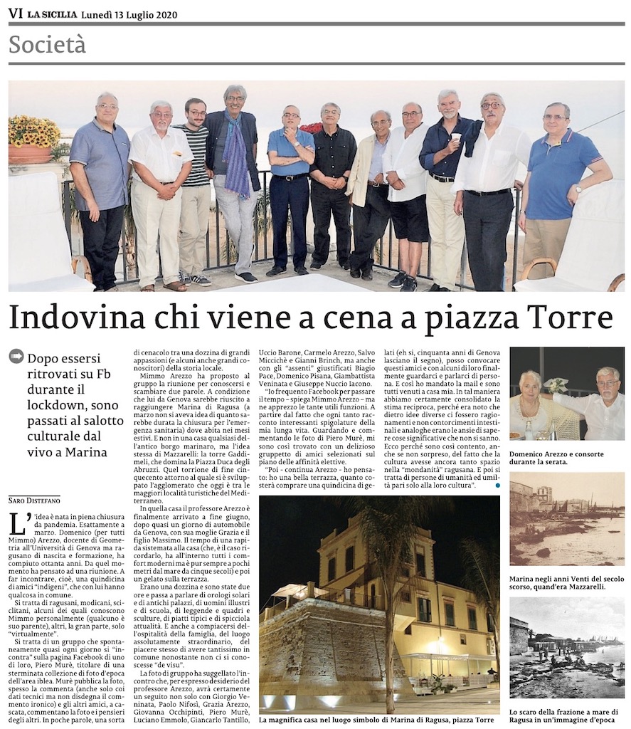 Ragusa, 13 luglio 2020 — L’idea è nata in piena chiusura da pandemia; esattamente a marzo. Domenico (per tutti Mimmo) Arezzo, docente di geometria all’Università di Genova ma ragusano di nascita e formazione, ha compiuto ottanta anni. Da quel momento ha pensato ad una riunione; a far incontrare, cioè, una quindicina di amici “indigeni”, che con lui hanno qualcosa in comune.