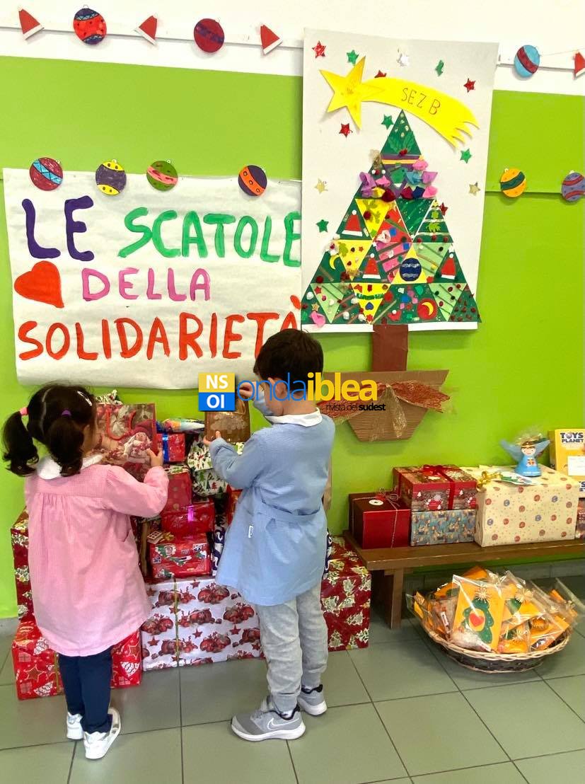 “Scatole di Natale” è un’idea semplice che ha permesso di fare del bene in maniera gioiosa. «Attraverso il dono si è tentato di far sentire il calore della relazione alle persone sole e meno fortunate, specialmente in un anno come questo, particolarmente sofferto da molti. Valorizzando la collaborazione con la famiglia, principale Agenzia Educativa, ogni bambino del Plesso ha inizialmente preparato e incartato la scatola a casa e successivamente, dopo averla consegnata alla scuola, l’ha corredata e personalizzata con biglietti di auguri realizzati in sezione», hanno dichiarato le insegnanti.
