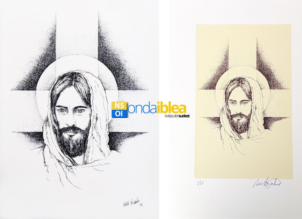 Volto di Cristo — China su carta lucida, cm. 33x24, e Serigrafia a 2 colori