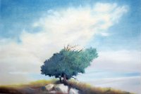 L’incombenza dei cieli tersi, contrastati da alberi secolari e fitte vegetazioni, i muri a secco, che disegnano ascese sulla tela, le agavi-regali che riverberano tra strade di campagna, riportano una realtà trasfigurata, che oltre la finzione, recuperano la bellezza colta dall’artista, certamente come valore aggiunto su quella naturale.