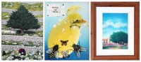 Michele Digrandi, tre opere: Triste realtà, Acrilico su tela cm. 70x50 (1986); Verso la vita, Acrilico su tela cm. 40x30 (1986); Sì... Rinasce, Pastello su cartoncino cm. 50.2x35.2 (1993)