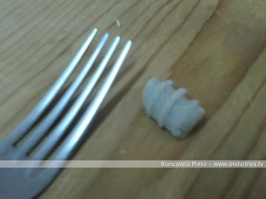 Se procedete con la lavorazione della pasta a mano , dopo averla stesa e tagliata a tocchetti un po’ spessi, aiutatevi, per la forma, con i denti di una forchetta oppure procedete con la macchina addetta a tale uso.