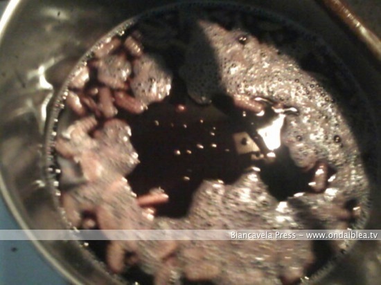 Nel frattempo mettete nuovamente in ebollizione il mosto dolce; se gradite potete aggiungere una scorza d’arancia e della cannella, e quando i “cuddureddi” sono pronti potete farli cuocere nel mosto, per circa un’oretta, assicurandosi che la pasta sia ben cotta.