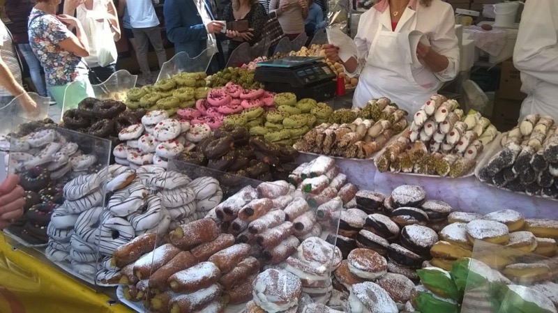 Le bancarelle sono ricche di prodotti enogastronomici e agroalimentari: i funghi, molti gusti di miele (all’arancia, al mandarino, al castagno, al limone e molti altri), le mele piccole ma dolcissime; e poi i formaggi, salsicce, spiedini di salumi e, ovviamente, non possono mancare i dolci. Leccornie di ogni tipo, dalle ciambelle al cannolo, fino ad arrivare alle crespelle di riso e miele e le “zeppole” fritte con le alici.