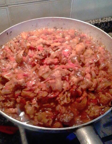 Man mano che friggete i singoli ingredienti versateli in un unico tegame e, giunti alla frittura di carote, sedano con capperi e olive verdi precedentemente snocciolate, versate una conserva di pomodoro e amalgamate il composto unendo, nel padellone della frittura iniziale, tutti gli altri alimenti già fritti.