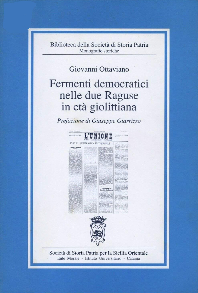 Nel volume “Fermenti democratici nelle due Raguse in età giolittiana” (Biblioteca della Società di storia patria. Monografie storiche, Lidostama Idonea, Catania 1995, con prefazione di Giuseppe Giarrizzo), Giovanni Ottaviano presenta le gesta del nonno recante il suo stesso nome. Sulla base di una ricca documentazione riportata nei diversi capitoli del libro (lettere, bozze di articoli, giornali, manifesti, ordini del giorno del Consiglio comunale, tra cui quello del 1912 riguardante la ferrovia Ragusa – Santa Croce Camerina – Mazzarelli), il percorso mostra l’impegno politico-amministrativo di un uomo che, interprete dei bisogni popolari, agiva per migliorare i servizi pubblici.