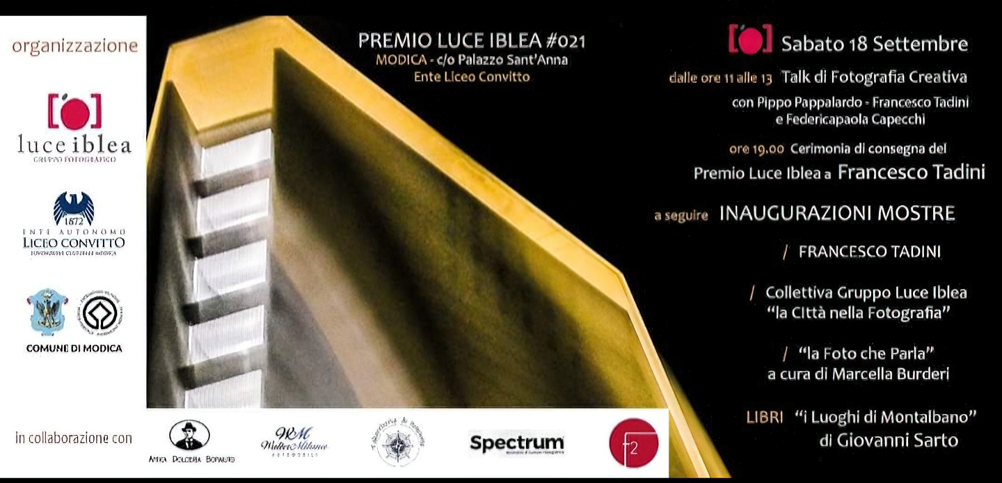 Modica, 9 settembre 2021 — Venerdì 17 settembre 2021 prende il via il Festival Fotografico “Luce Iblea” che, come ogni anno, conferisce un Premio alla fotografia.