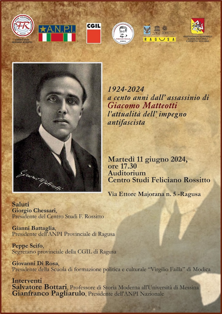 Ragusa: il Centro Studi F. Rossitto ricorda l'assassinio di Giacomo Matteotti