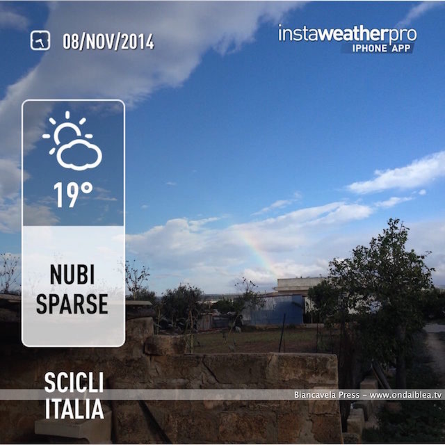 Ragusa, 8 novembre 2014 – Con una bella cartolina scattata nella marina di Scicli (in Contrada Mosca), mentre un bellissimo arcobaleno si stagliava nel cielo, presentiamo la situazione meteorologica del Sud Est, dopo la tempesta di ieri, e il pericolo, in parte scampato, del ciclone africano, passato poi per il Canale di Sicilia e lo Jonio.