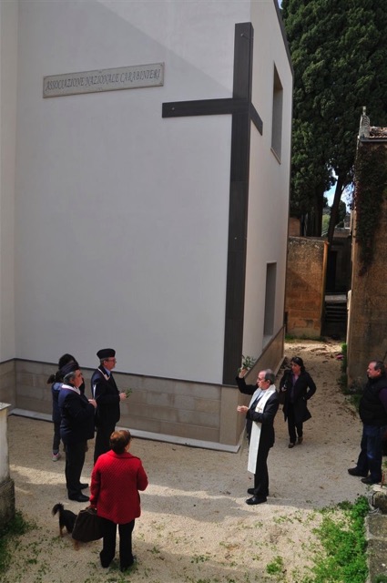Ragusa, 10 novembre 2014 – Il direttore dell’ufficio diocesano per la Pastorale della salute, don Giorgio Occhipinti, anche nella qualità di socio onorario, ha benedetto, ieri mattina, nel corso di una apposita cerimonia, la nuova cappella funeraria dell’Associazione nazionale carabinieri, sita all’interno del cimitero di Ragusa centro.