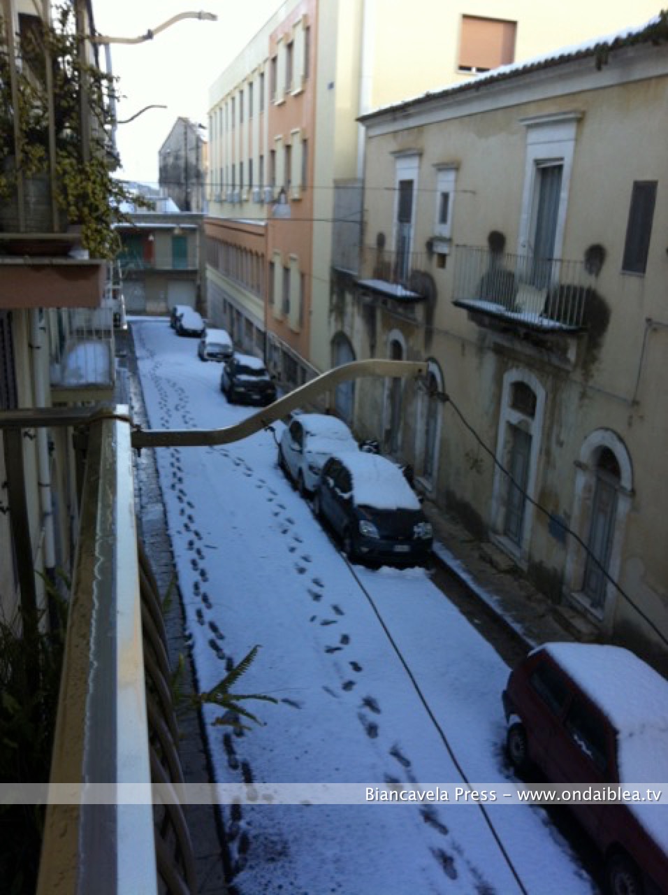 Eccezionale nevicata, a Ragusa, dopo quella intensa del 2005 (un'altra meno intensa si era verificata 3 anni fa). La città si è svegliata imbiancata come altre città vicine, Modica, Scicli, Vittoria, Comiso, Ispica...