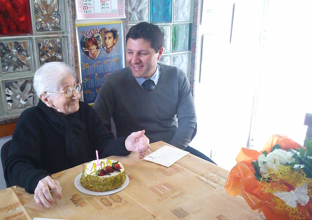 Ragusa, 31 marzo 2015 – Un omaggio floreale per festeggiare i cento anni 100 anni della “nonnina” ragusana Salvatrice Colosi.