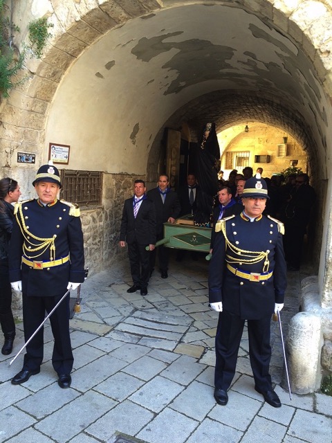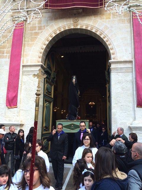 Alle 8,30, da Santa Maria di Betlem, per il secondo anno consecutivo, il simulacro della Madonna bardato a lutto ha percorso le viuzze situate nella zona a monte della chiesa, transitando anche nei pressi delle chiese della Catena e di Santa Margherita.