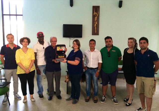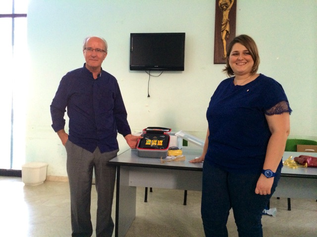 Vittoria, 25 luglio 2014 – Nella saletta della Chiesa dello Spirito Santo il Rotaract Club di Vittoria ha consegnato a padre Beniamino Sacco e ai suoi collaboratori della Fondazione del Buon Samaritano il defibrillatore.