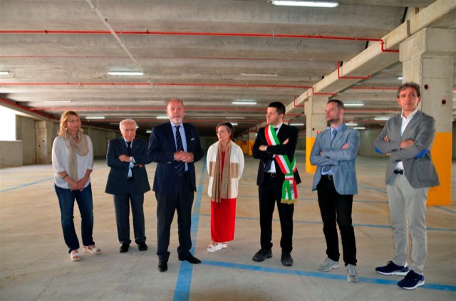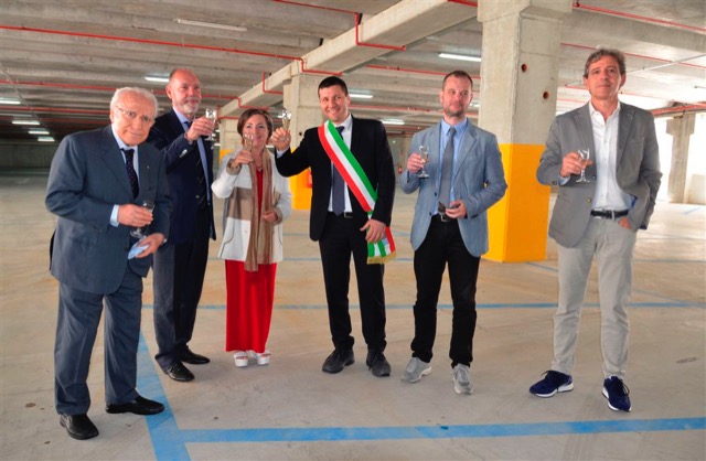 Il sindaco Federico Piccitto ha tagliato il nastro inaugurale mentre in contemporanea si sono alzate le sbarre che hanno dunque ufficialmente dato il via libera all’accesso al parcheggio.