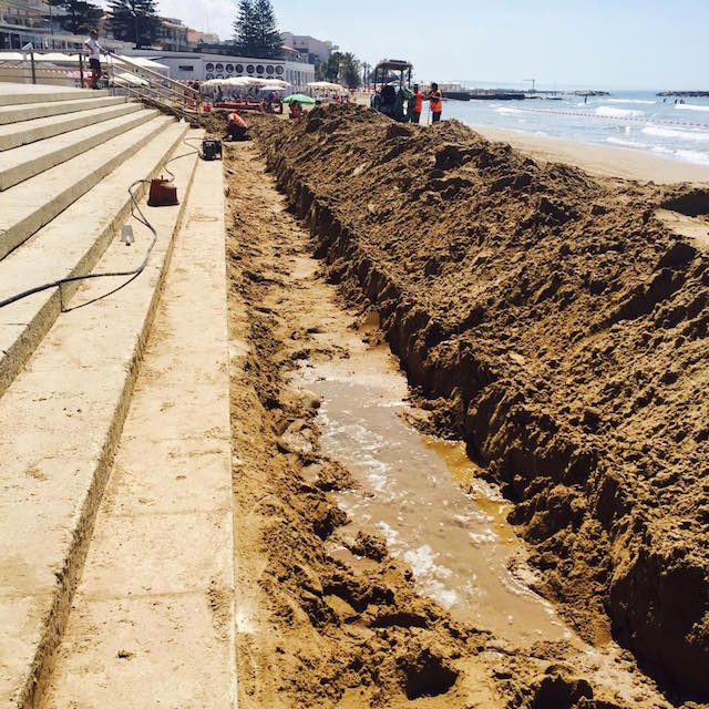 Rotto tubo fognatura nella spiaggia di Piazza Torre, Marina di Ragusa