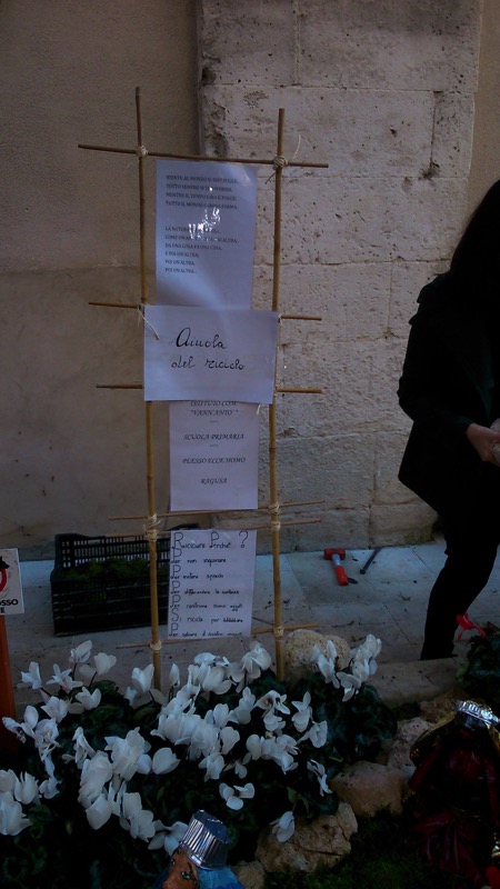 #Ragusa, 11 dicembre 2015 – Gli alunni della scuola primaria del plesso Ecce Homo, nell’ambito del progetto “Adotta un Vaso”, hanno oggi decorato tre aiuole di via Roma e l’albero di Natale installato in Piazza San Giovanni con addobbi e decorazioni realizzati con materiali di riciclo, così come anche il presepe sistemato nell’aiuola “del riciclo” di via Roma.