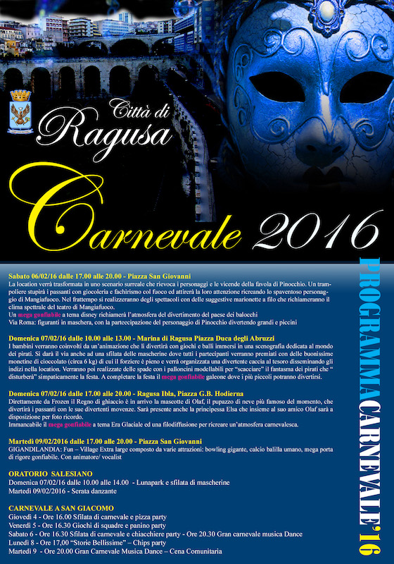 Lunedì, 1 febbraio 2016 – La locandina del Carnevale 2016 a Ragusa...