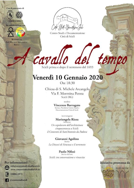 In questa ricorrenza, il Centro Studi e Documentazione Città di Scicli invita la cittadinanza, per il secondo anno consecutivo, a partecipare ad A Cavallo del Tempo - Scicli prima e dopo il terremoto del 1693, l'incontro culturale di venerdì 10 gennaio alle 18.30, presso la Chiesa di San Michele Arcangelo.