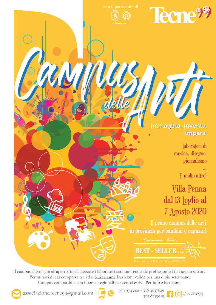 Il Campus delle Arti si svolgerà dal 13 Luglio al 7 Agosto 2020 - a cadenza settimanale - ed è compatibile con i bonus per centri estivi.