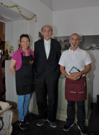 A fine serata, molto carinamente il maestro Battiato, nel suo carismatico e sintomatico mistero, si è intrattenuto per far qualche foto con il personale ed alcuni ospiti dell’Osteria, seguito da Dafoe che si è messo in posa con accanto la moglie, la regista e attrice italiana, Giada Colagrande.