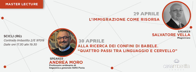 Ma non solo, anche: “Alla ricerca dei confini di Babele, quattro passi tra linguaggio e cervello”, che si terrà il 30 Aprile presso la stessa sede e alla stessa ora, e che vedrà come relatore Andrea Moro, professore ordinario di linguistica generale presso la IUSS di Pavia e direttore del NEtS (Neurocognition, Philosophy and theoretical Syntax), che fornirà ai presenti nozioni di linguistica contemporanea, nei suoi limiti e nel suo funzionamento trattando argomenti molto seri e importanti in modo non serioso e accattivante.