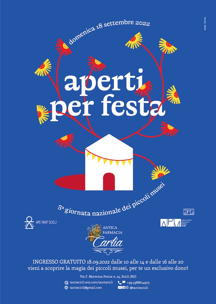Torna domenica 18 settembre in tutta Italia l'appuntamento con la Giornata Nazionale dei Piccoli Musei, giunto alla quinta edizione e diventato tradizione ormai a Scicli grazie all’Associazione Culturale Tanit che schiude le porte dell’Antica Farmacia Cartia, il museo dello speziale aperto e gestito dal 2014 in collaborazione con il dottor Guglielmo Cartia, ultimo esponente in ordine di tempo della famiglia di farmacisti sciclitani.