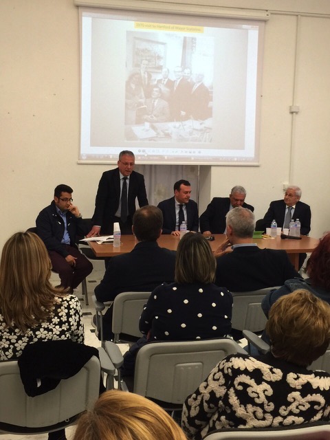 Dopo i saluti dell’Assessore al Welfare e alla Pubblica Istruzione, Marilena Miceli, è stato proiettato un videomessaggio dell’ex Primo cittadino di Hartford, oggi novantaduenne, che ha commosso il numeroso pubblico presente.