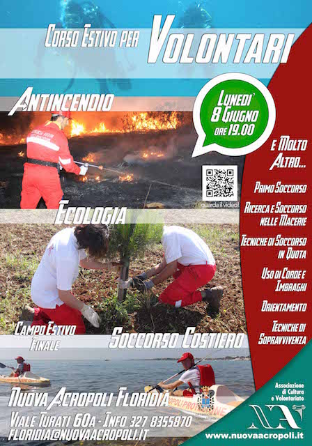 Nuova Acropoli Floridia propone il nuovo “Corso di Formazione al Volontariato in Protezione Civile”, apertura lunedì 8 giugno alle ore 19:00, presso la sede dell’Associazione in Viale Turati 60/A Floridia.