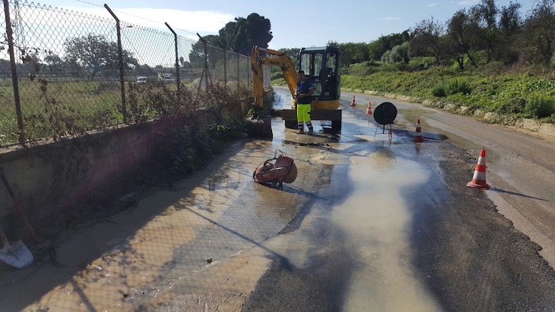 Siracusa, 19 ottobre 2015 – Perdita idrica nella tubazione DN 300 in via Ascari, il guasto coinvolge la tubatura di approvvigionamento al serbatoio di Bufalaro Alto.