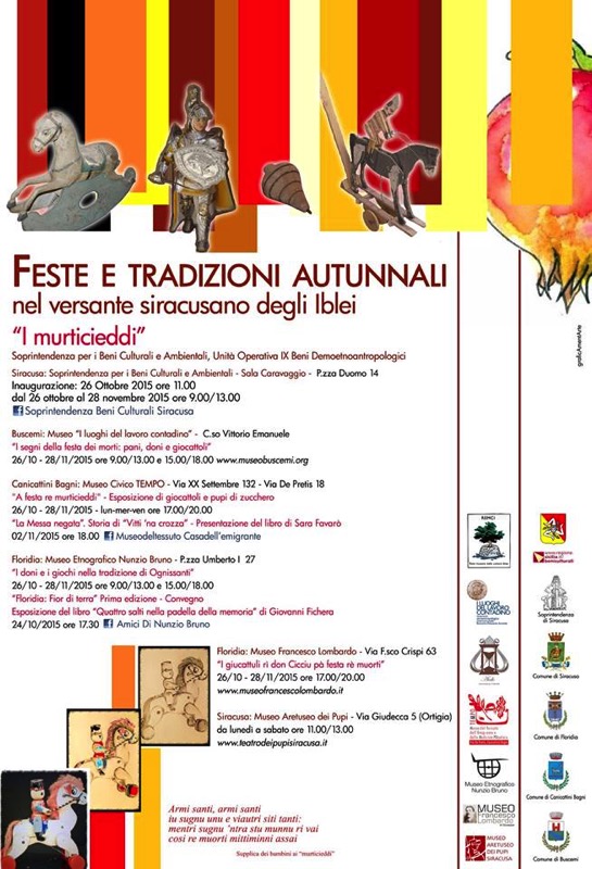 Feste e tradizioni autunnali degli Iblei: gli eventi al Museo Civico Tempo di Canicattini Bagni: “A festa dei murticieddi” - Esposizioni giocattoli e pupi di zucchero dal 26 Ottobre al 28 Novembre 2015. “La Messa negata. Storia di Vitti ‘na crozza” - Presentazione del libro Sara Favarò - Lunedì 2 Novembre ore 18