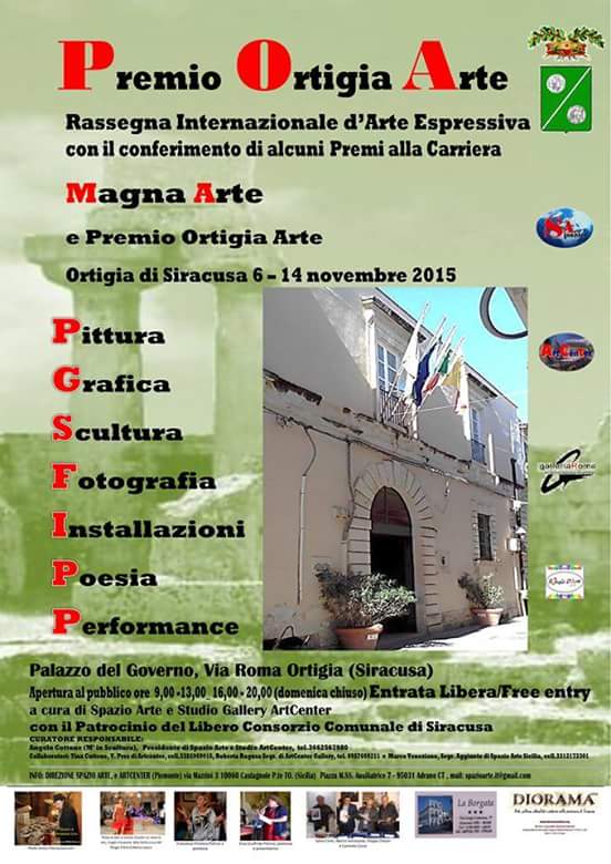 Siracusa, 24 ottobre 2015 – A Siracusa dal 6 al 14 novembre 2015 si terrà "Premio Ortigia Arte 2015" Rassegna d'Arte Internazionale organizzata dall'Ass. Culturale Spazio Arte del pres.Angelo Cottone, con il patrocinio del Libero Consorzio Comunale di Siracusa, e curato dai collaboratori Tina Cottone vice pres.