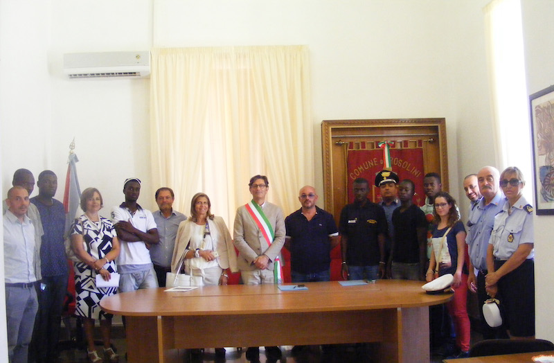 Rosolini, 29 luglio 2016 – Cerimonia di sottoscrizione del protocollo d’intesa tra la Prefettura di Siracusa, il Comune di Rosolini e il Centro di accoglienza “Alessandro Frasca” per attività di volontariato e integrazione dei richiedenti asilo.