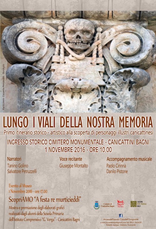 Itinerario storico-artistico alla scoperta di personaggi illustri canicattinesi, 1 Novembre 2016 ore 10 - Ingresso Cimitero monumentale di Canicattini Bagni