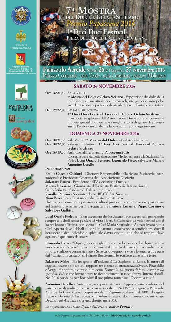 Palazzolo Acreide, 23 novembre 2016 – Duci duci festival, 26 e 27 novembre: Settima mostra del dolce e del gelato siciliano promossa in collaborazione con l’associazione Duciezio.
